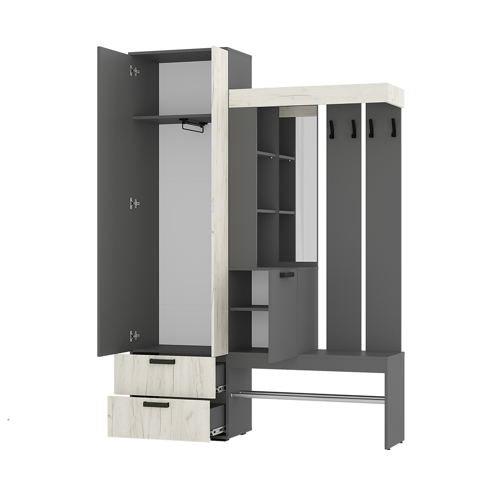 Прихожая «Трамп» Графит/Дуб крафт белый
